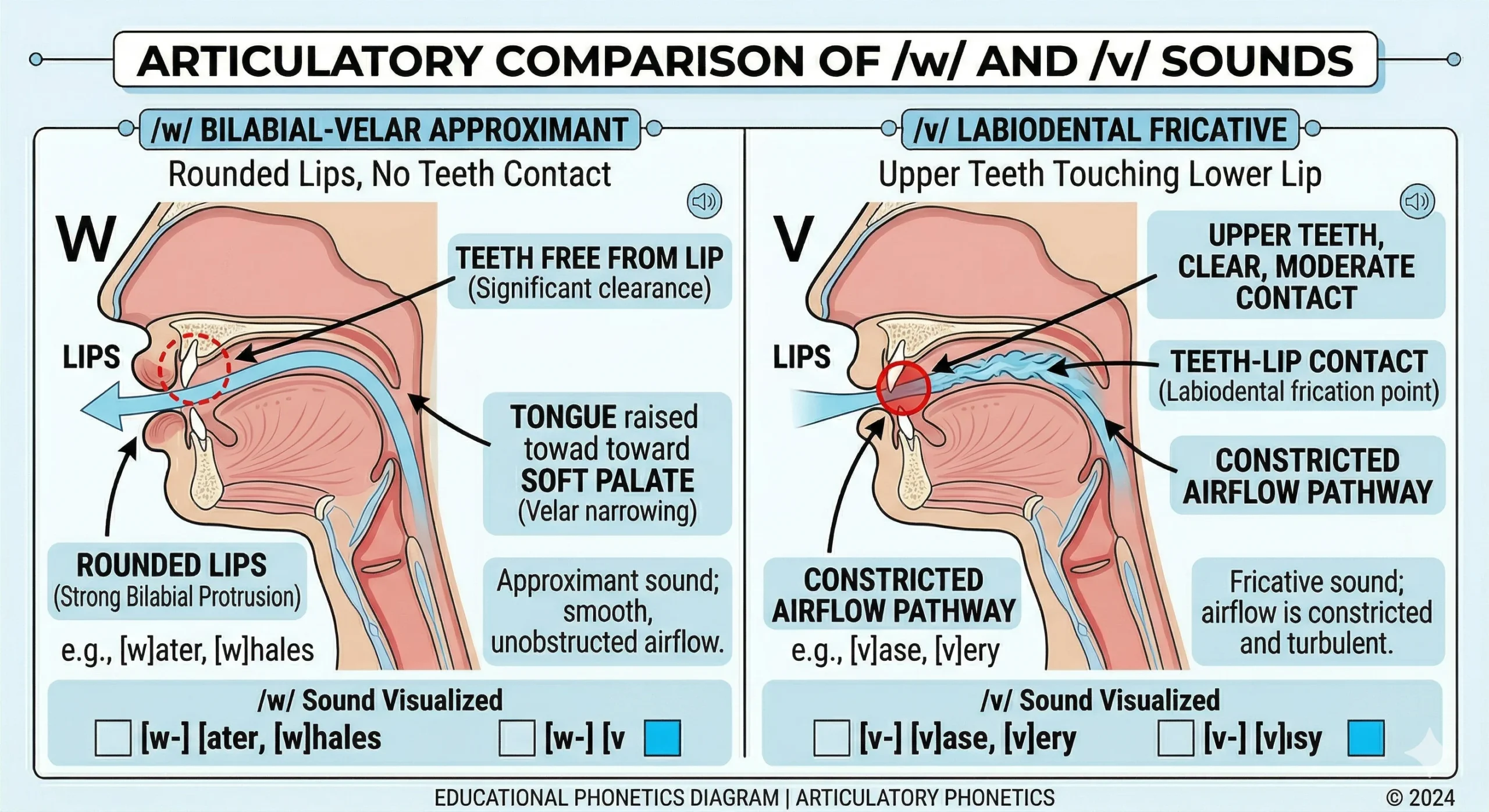 - Minimal pair drills: “wine/vine,” “west/vest,” “wet/vet,” “worse/verse,” “while/vile,” “wail/veil”